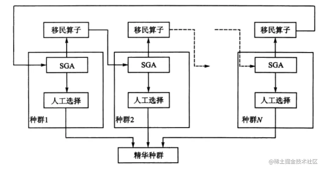- 多种群遗传算法,多个种群同时进化,然后加入移民算子,将个体在种群之间交换。