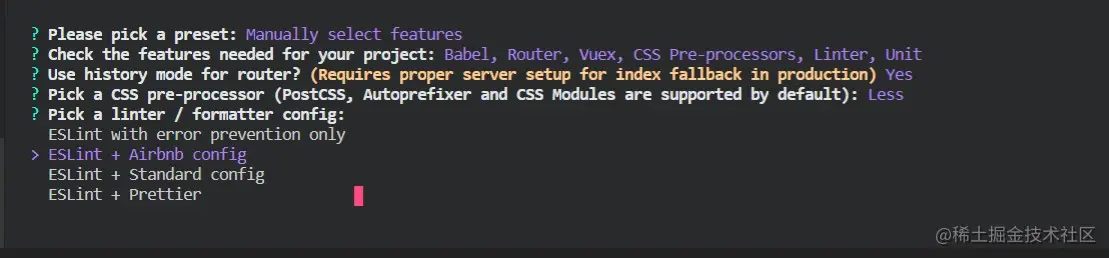 选择 ESLint 的代码规范,此处使用 Airbnb 代码规范