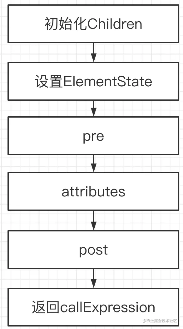 JSXElement的主要功能是将JSXElement节点转换为Function Call函数,结合代码,其主要的功能流程如下: