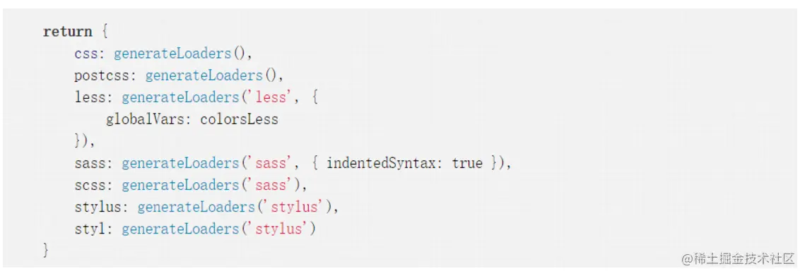 • 在utils.js 文件中 找到 generateLoaders 方法