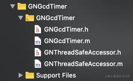 注:当前目录下需要pod的文件都是GN开头的文件:GNGcdTimer.h / .m 和GNThreadSafeAccessor.h / .m