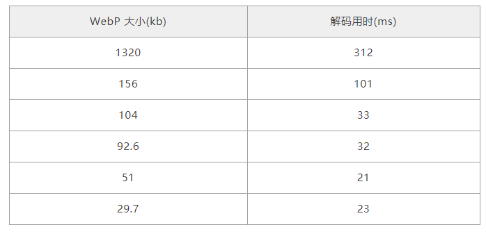 该方案下 WebP 图片实际的加载时间为 网络数据传输用时 + 解码用时,面对性能要求较高的场景,WebP 的加载速度真要受限于 JS 不擅长的编解码运算能力了么?当我们再次研究 libwebp 的资料时,浏览到下述说明: