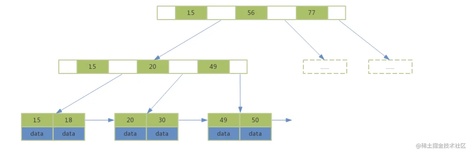 - 非叶子节点不存储data数据,只存储索引值,这样便于存储更多的索引值
