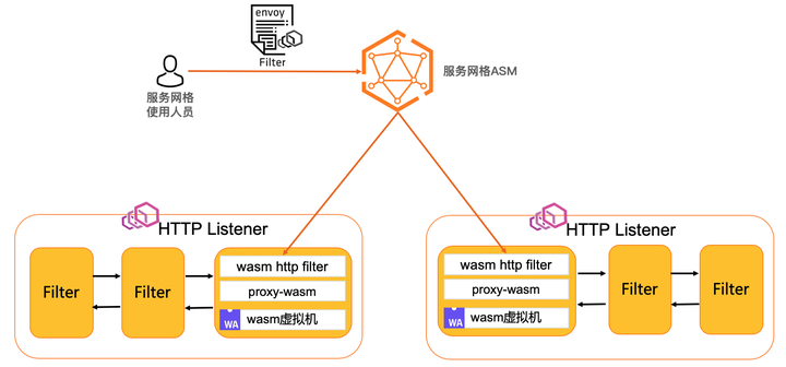 阿里云服务网格 ASM 产品中提供了对 WebAssembly(WASM)技术的支持,服务网格使用人员可以把扩展的 WASM Filter 通过 ASM 部署到数据面集群中相应的 Envoy 代理中。通过自研的 ASMFilterDeployment 组件, 可以支持动态加载插件、简单易用、以及支持热更新等能力。
