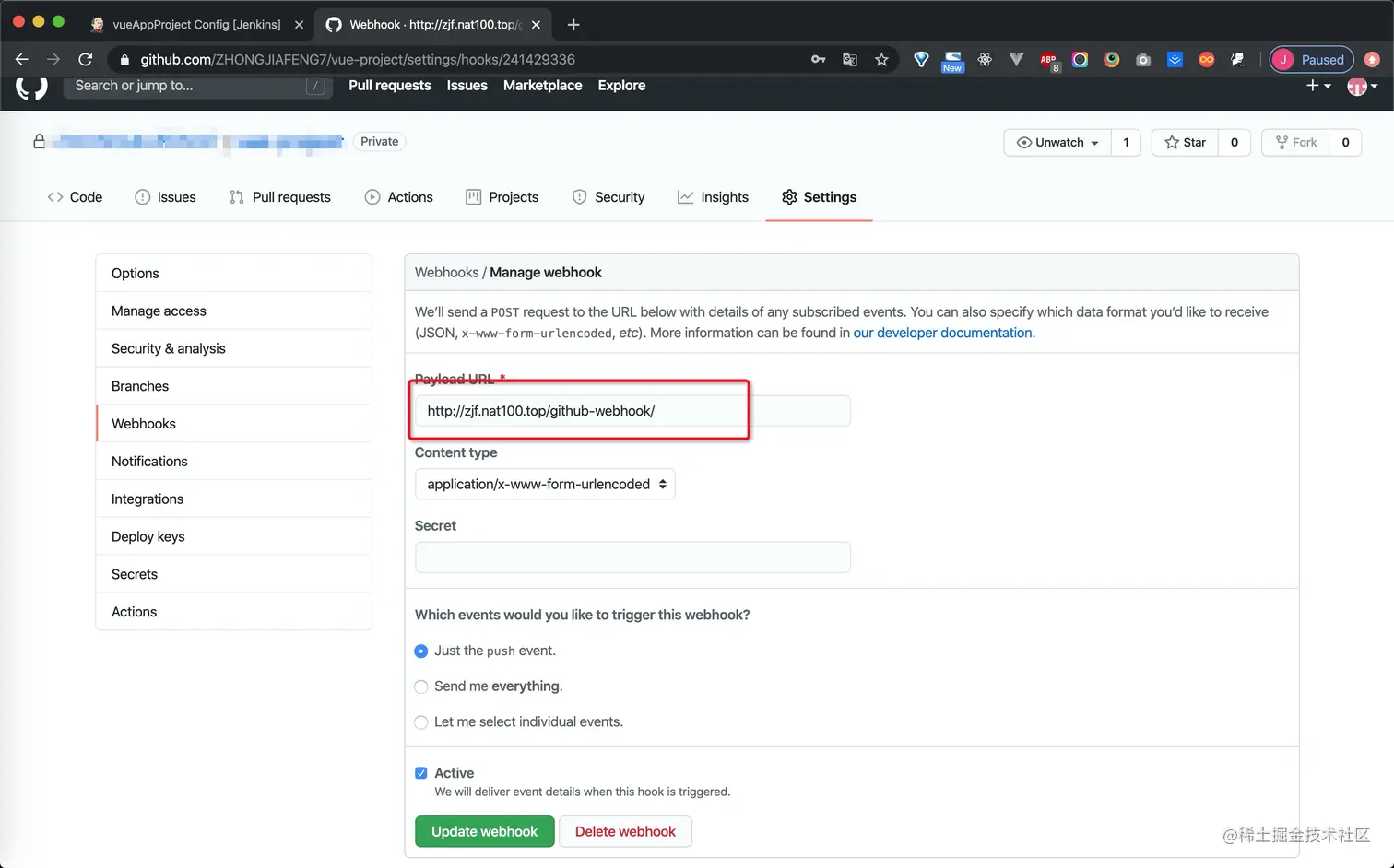*ps:配置webhook, 需要配置暴露给外部的ip地址,在本机上进行测试的话,推荐使用natapp用来做映射,下载natapp客户端文件