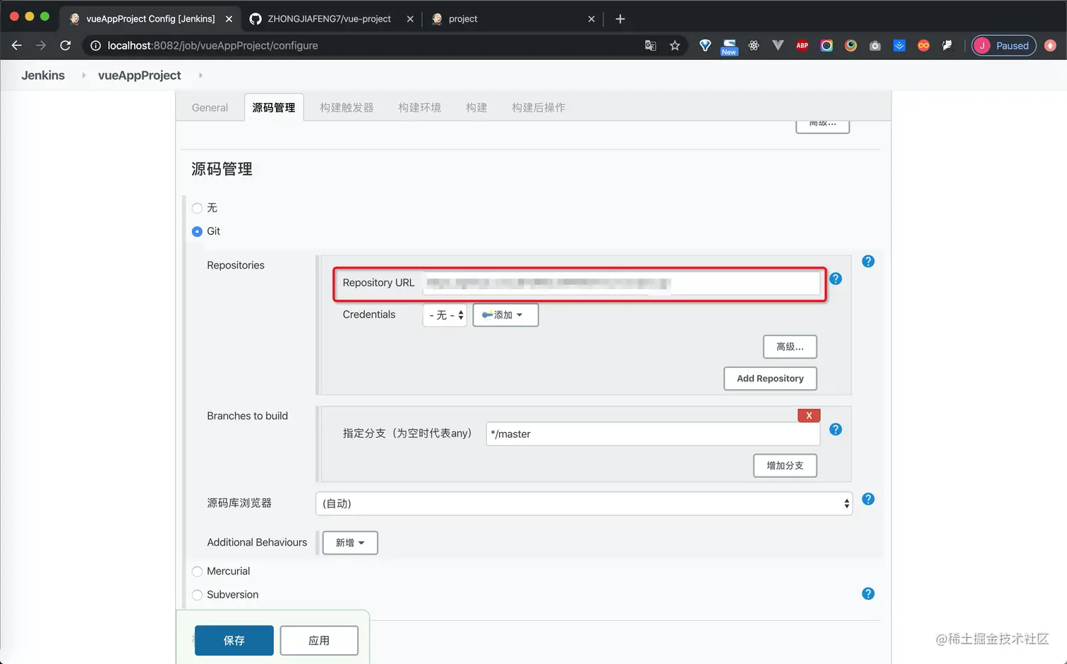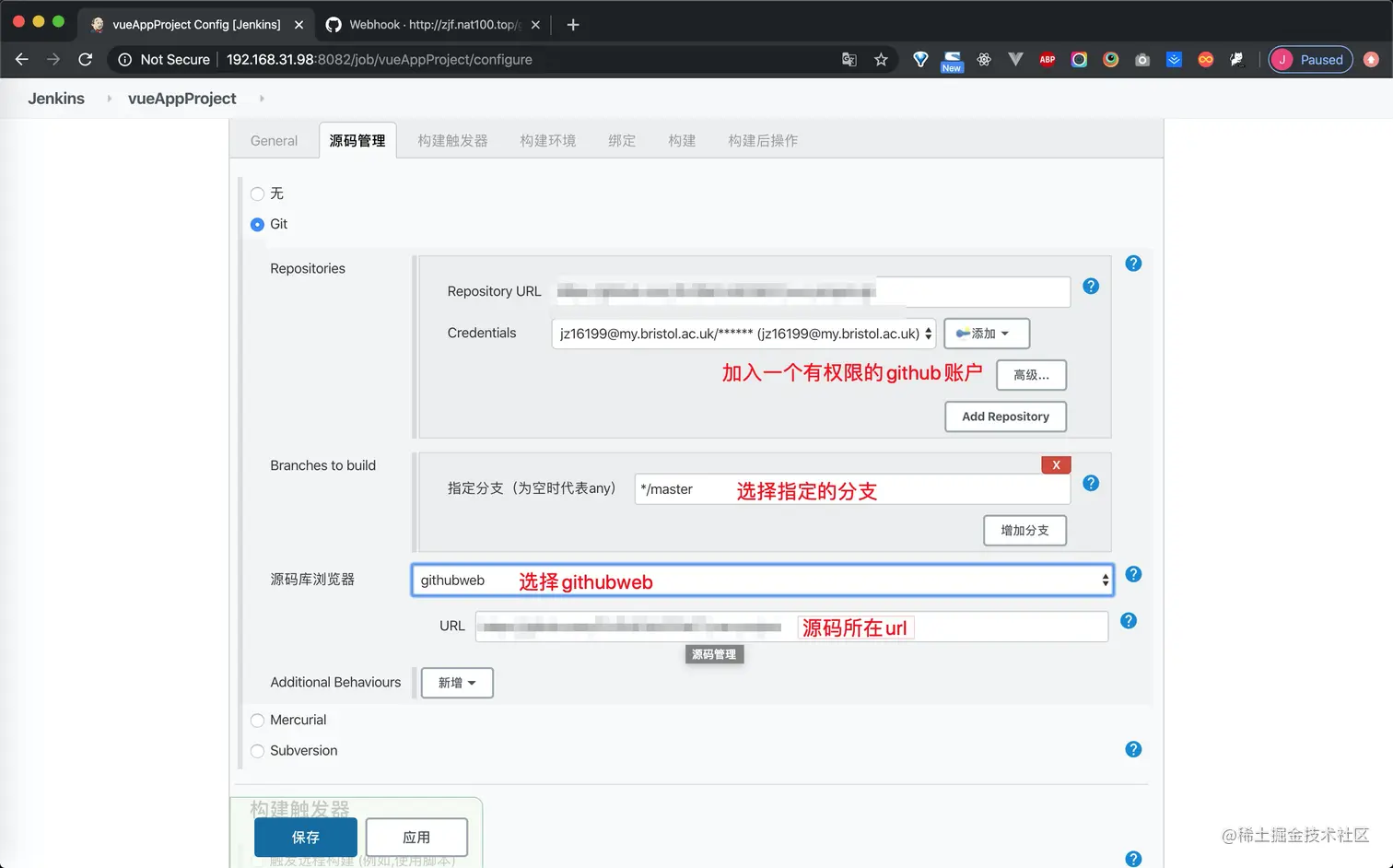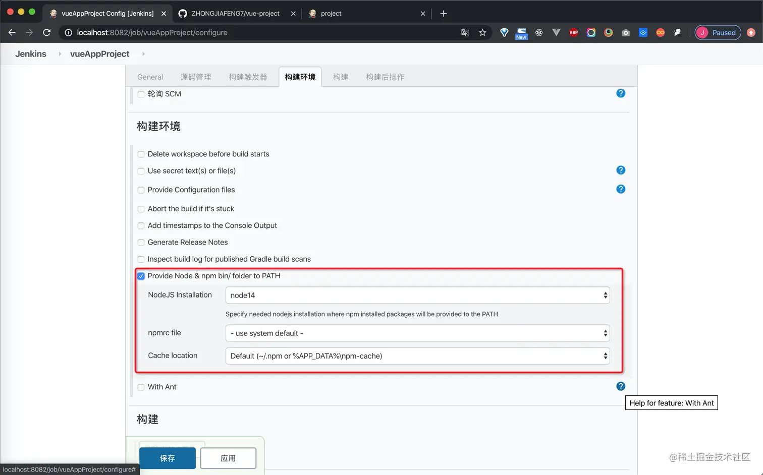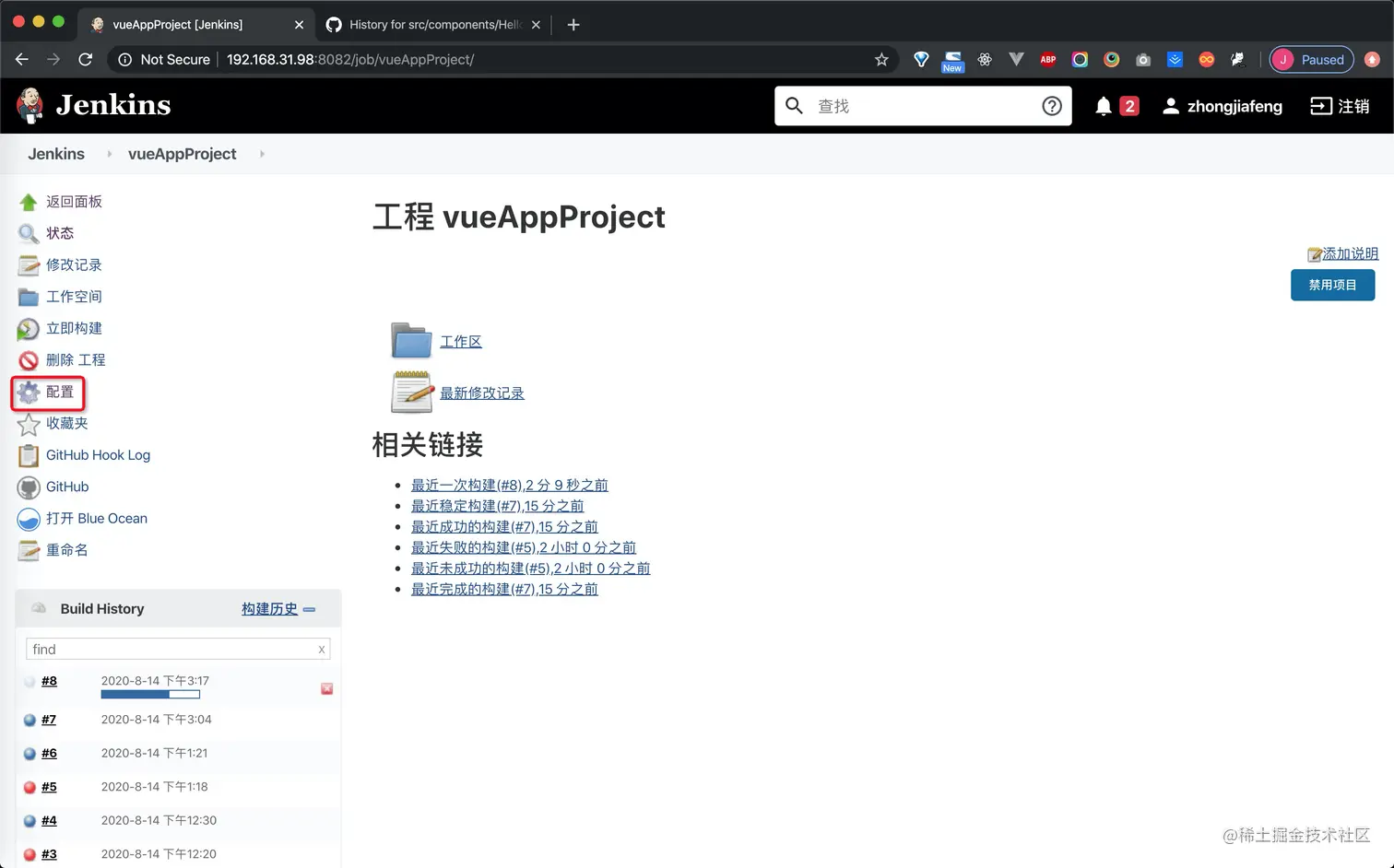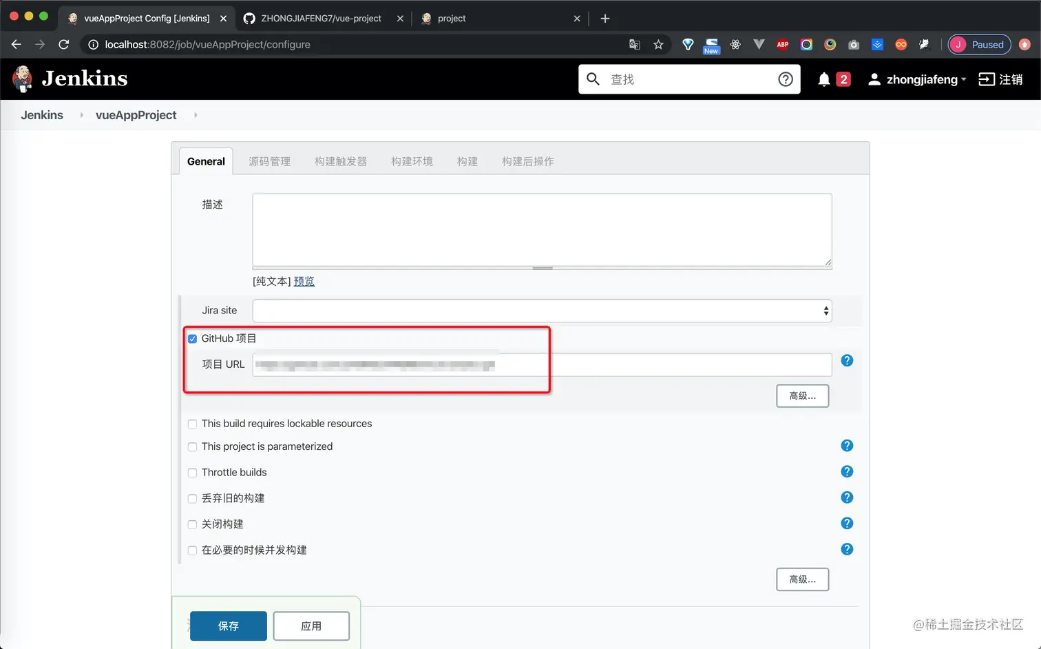 此外还需要在jenkins平台内部对于此项目进行配置