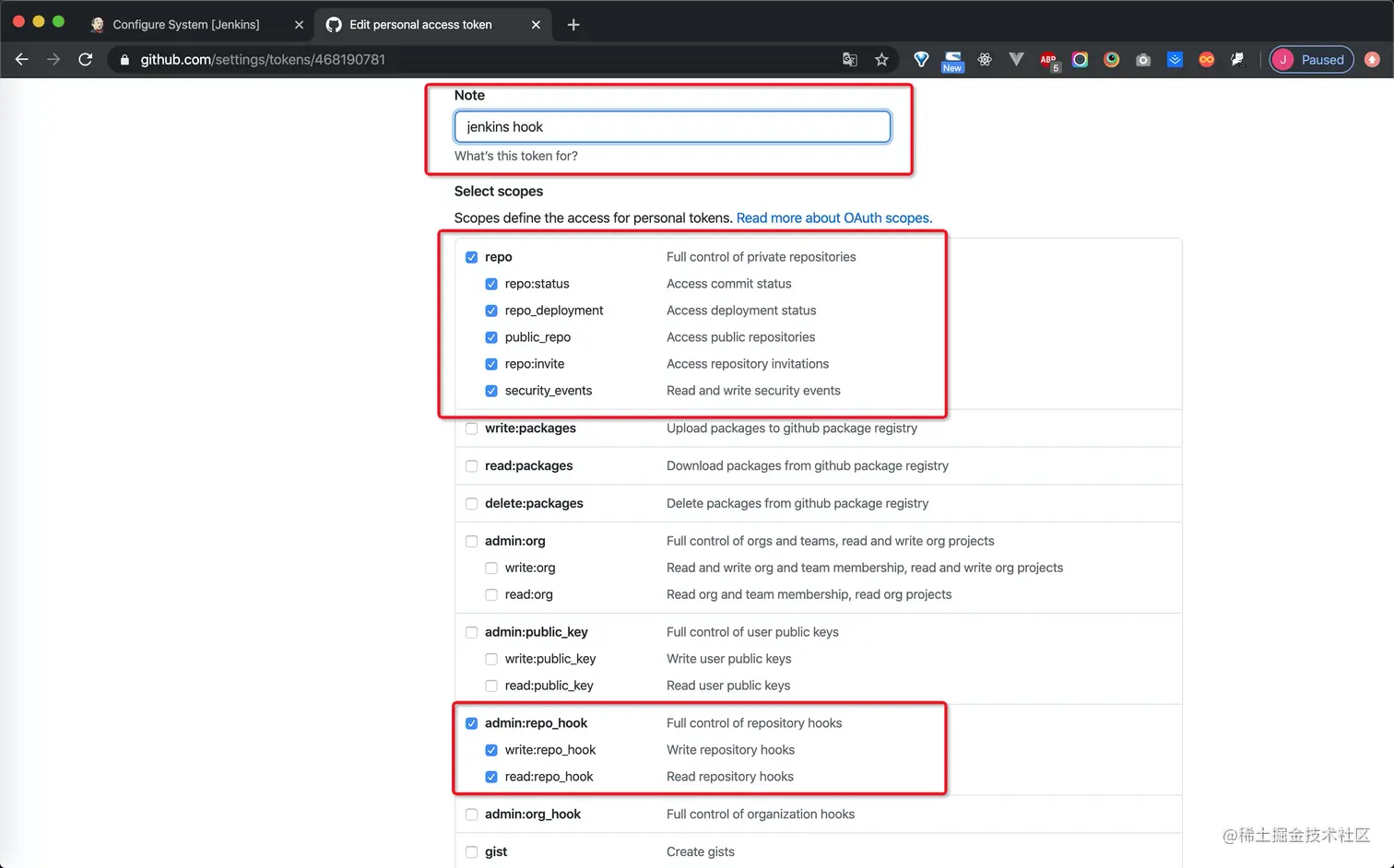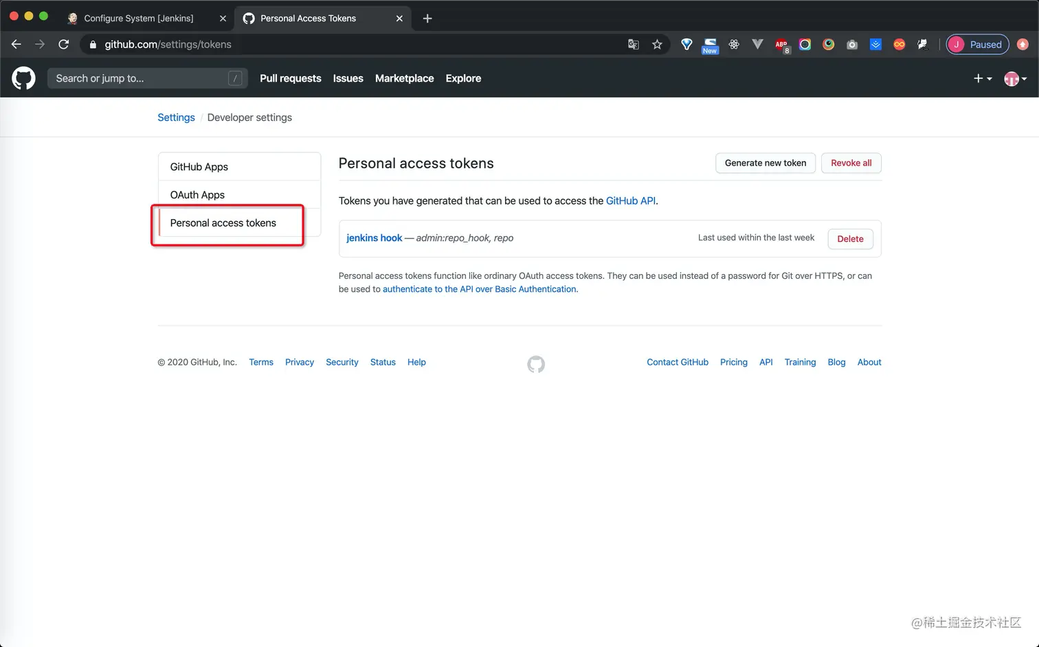 2.选择personal access tokens,进行仓库的一些配置
