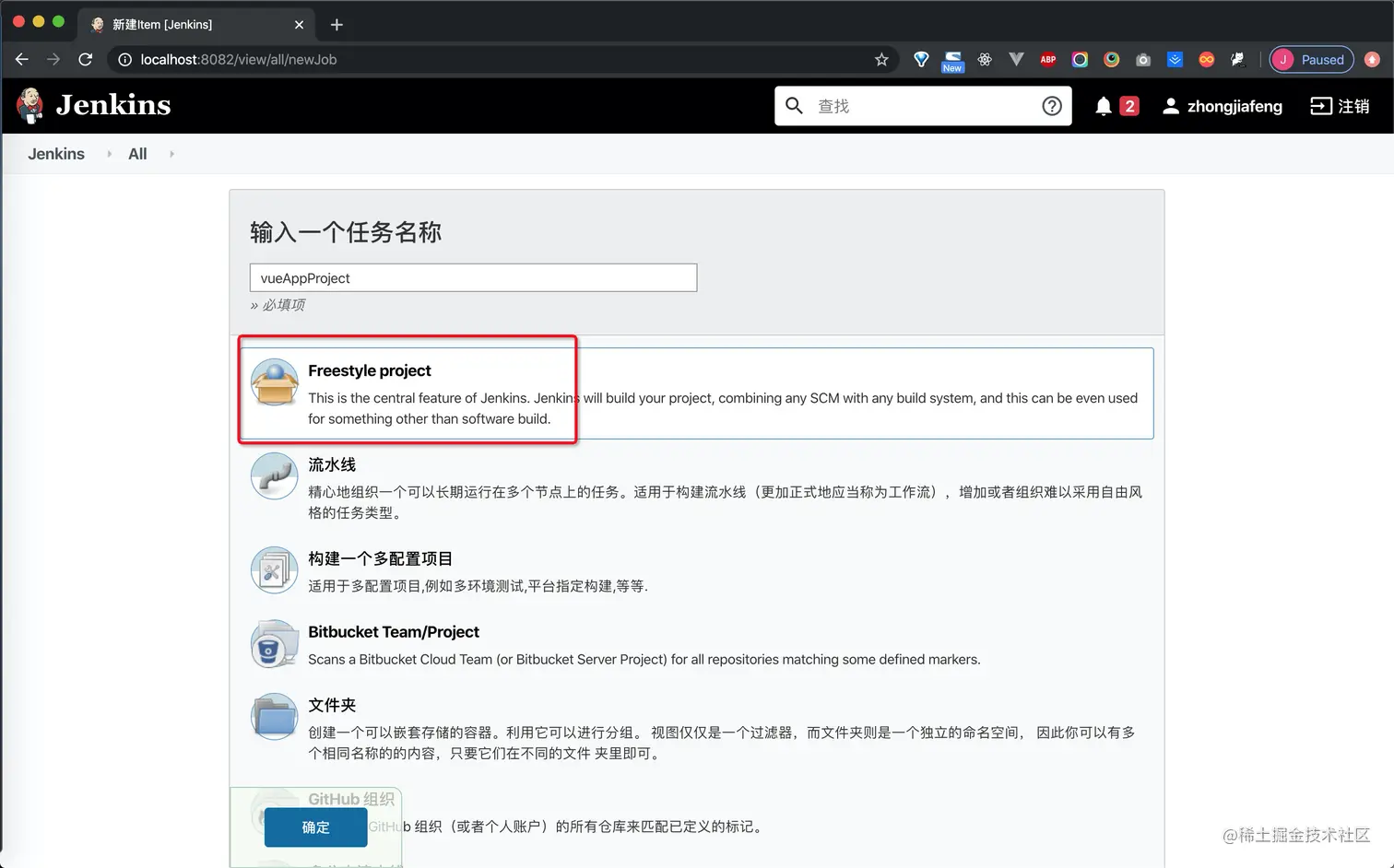 2.选择freestyle project