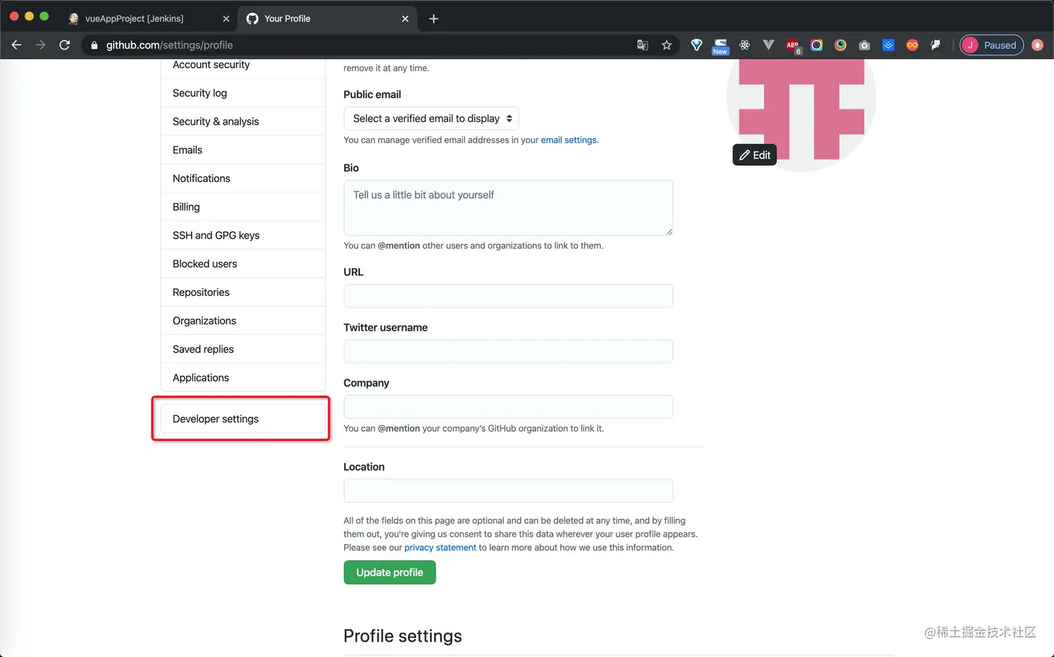 1.进入github,进行开发者设置