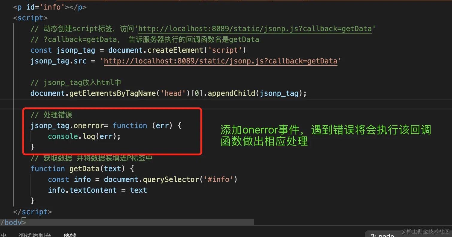 1,JSONP请求服务器端发生错误怎么办,前端如何处理这个错误。