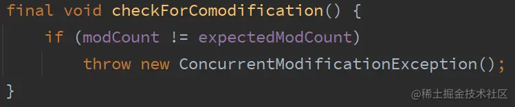在增强for循环中循环地进行remove(或者add)操作,会抛ConcurrentModificationException异常,因为remove操作和add操作均会修改modCount的值,在迭代器的next方法中,每次都会调用checkForComodification()方法来校验当前modCount值与期望值是否相同,因此会抛异常。