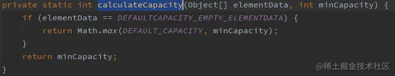 先调用calculateCapacity()这个静态方法确认所需要的最小容量minCapacity。