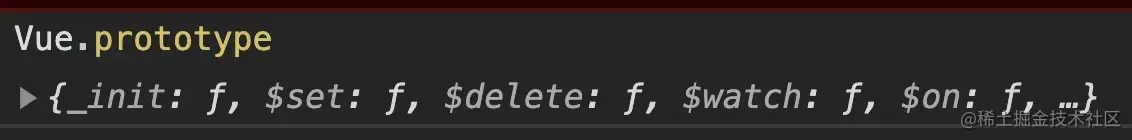 上面的代码看似没有问题,实际上运行的时候会报错,因为_init方法会覆盖Vue.prototype上面的同名方法,如下图为Vue原型链的方法,第一个便是_init