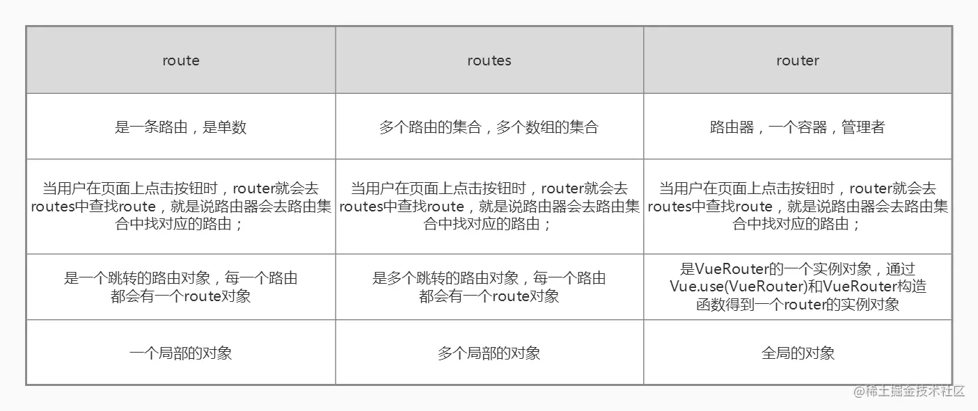 | this.$router:全局的 router 实例。通过 vue 根实例中注入 router 实例,然后再注入到每个子组件,从而让整个应用都有路由功能。其中包含了很多属性和对象(比如 history 对象),任何页面也都可以调用其 push(), replace(), go() 等方法。