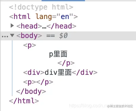 结果...问题仍然存在,但当这两组节点放在一起时,我突然发现,div 是直接作为 p 的子元素的,我模糊的记得 long long ago 之前,学习 html 基础的时候,有个经典案例就是 p 标签下面不能直接嵌套 div 标签!!