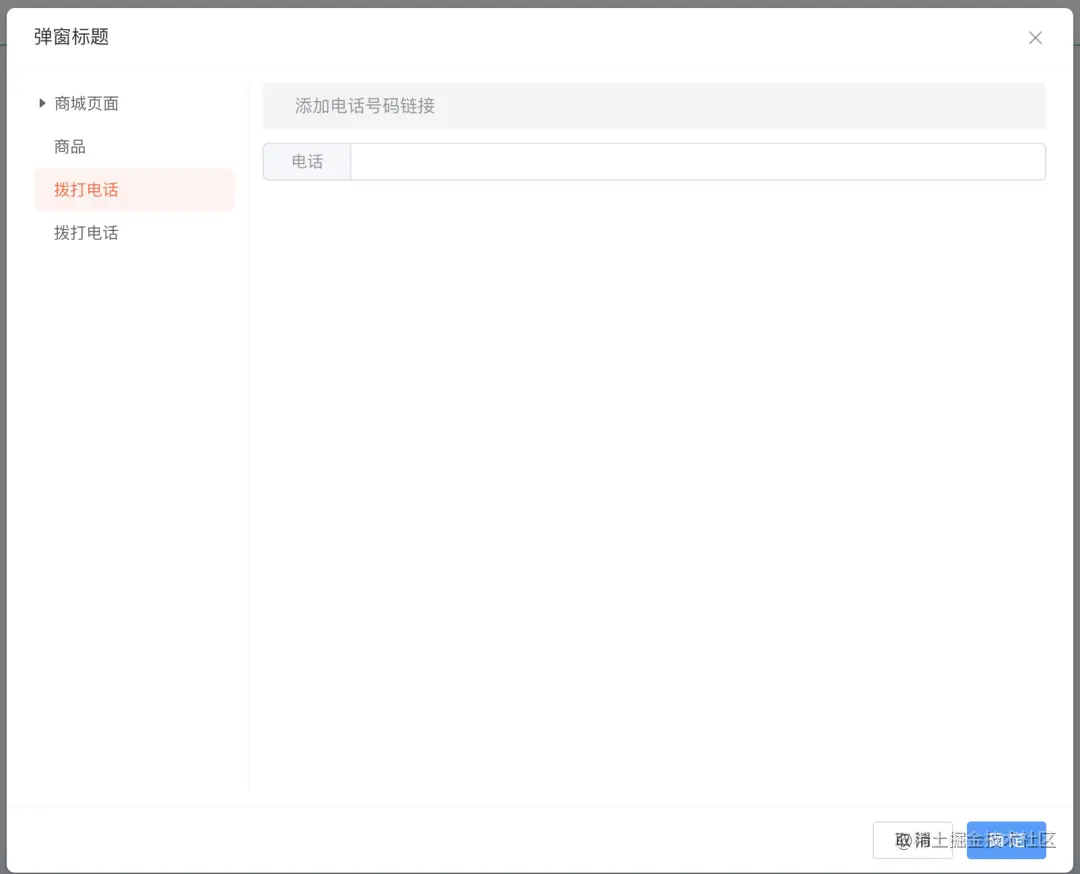 type: "call" // 类型 Url:普通链接显示按钮类型,list:显示列表类型,call:拨打电话(childList为空),
