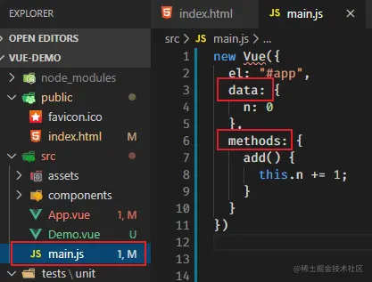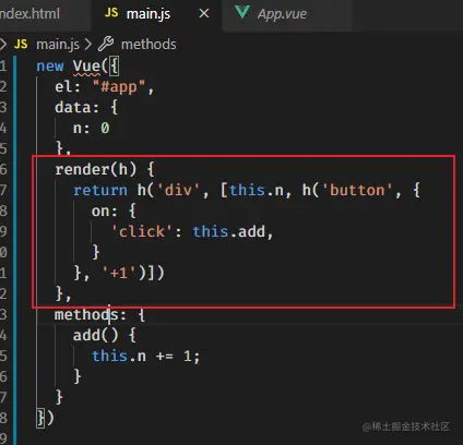 由上述可知,完整版需要将视图直接写在 html 中,直接通过 html 获取视图,下面的内容就会直接在页面显示数字 0,同时为 button 标签添加了点击事件: