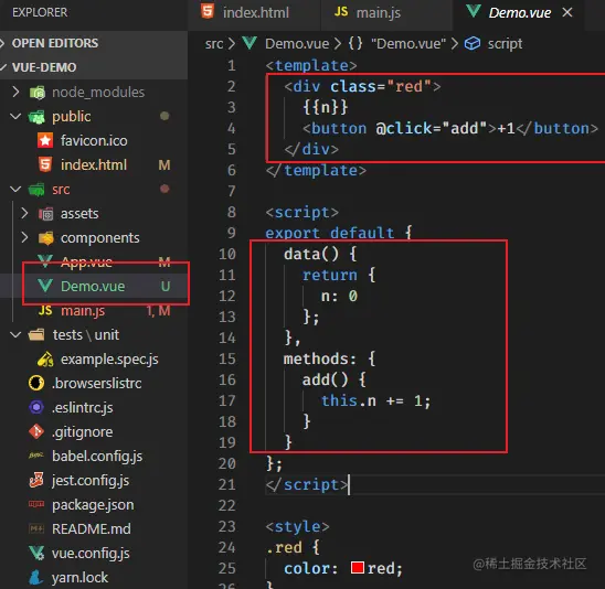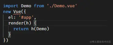 第二种使用方式:通过vue-loader的方式,在src目录下新建一个Demo.vue文件,定义好内容后在main.js中导入该文件得到一个对象,再将该对象放在render函数中。