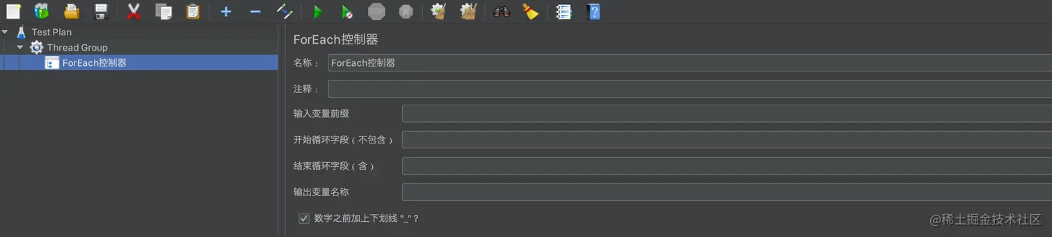 - ForEach控制器:ForEach控制器一般和用户自定义变量一起使用,其在用户自定义变量中读取一系列相关的变量。该控制器下的取样器或控制器都会被执行一次或多次,每次读取不同的变量值