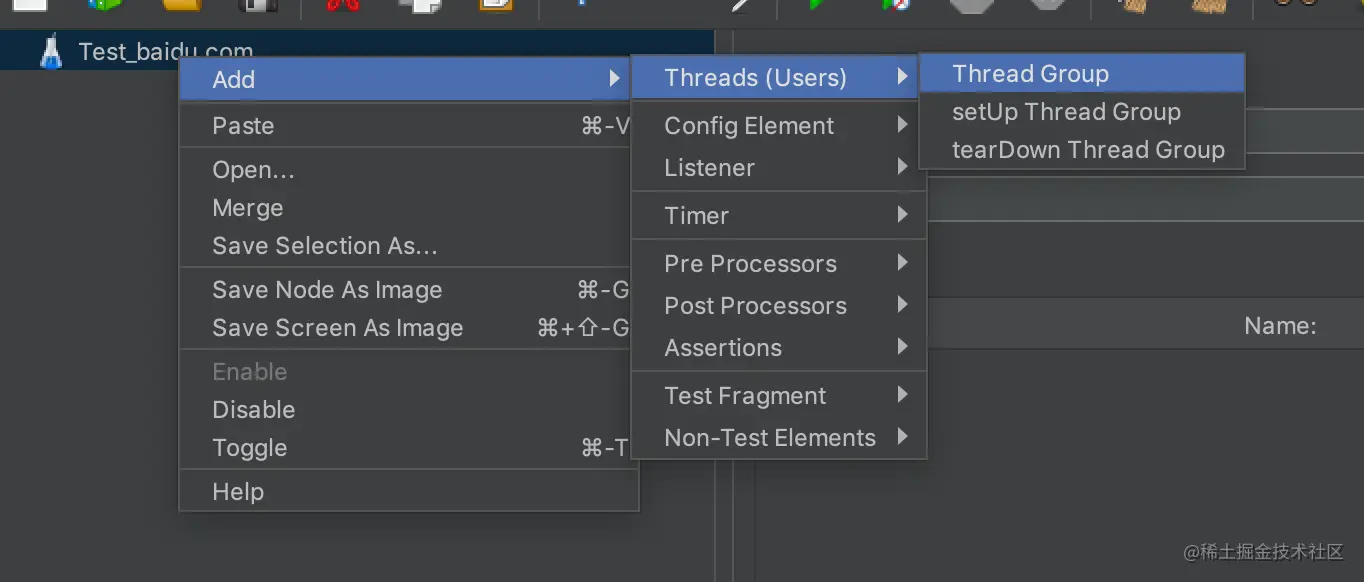 在一个测试计划中的所有元件都必须在某个线程下。所有的任务都是基于线程组。
