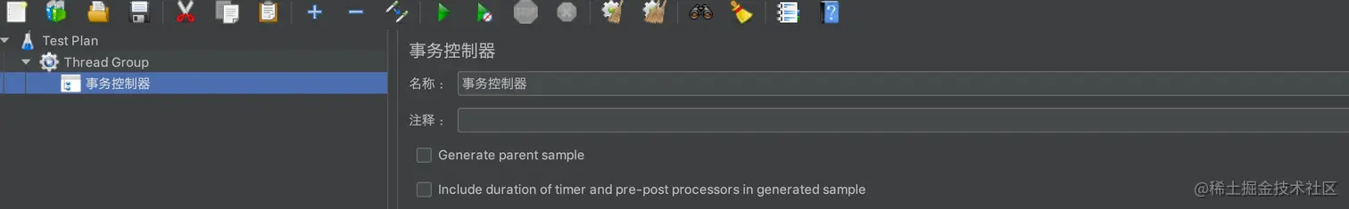 - 事务控制器:生产一个额外的采样器,用来统计该控制器子节点的所有时间