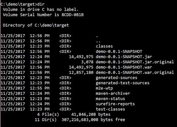 对于 Maven,用 mvn package 来打包应用。之后,会创建一个 WAR 文件,可以在 target 目录下找到它,如下图: