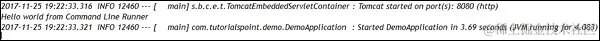 package com.tutorialspoint.demo;import org.springframework.boot.CommandLineRunner;import org.springframework.boot.SpringApplication;import org.springframework.boot.autoconfigure.SpringBootApplication;@SpringBootApplicationpublic class DemoApplication implements CommandLineRunner { public static void main(String[] args) { SpringApplication.run(DemoApplication.class, args); } @Override public void run(String... arg0) throws Exception { System.out.println("Hello world from Command Line Runner"); }}
