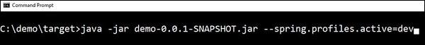 运行 JAR 文件时,需要基于每个属性文件来指定 spring 活动配置。缺省情况下,Spring Boot 应用使用 application.properties 文件。设置 spring active 配置的命令如下所示: