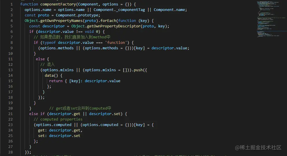 Component内部指向了componentFactory函数,让我们继续勒死狗