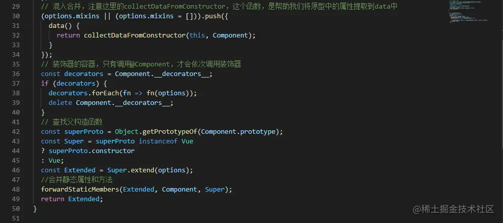 在这里我再补充一下,Vue的源码实现中使用到了继承,我们所使用的所有组件都是继承自Vue这个类,包括Vue的原型方法和静态方法。这样保证了每个组件的唯一性。这里我们就可以看到,我们虽然平常在写面向过程代码,但是框架已经帮助我们转向了面向对象风格的代码。