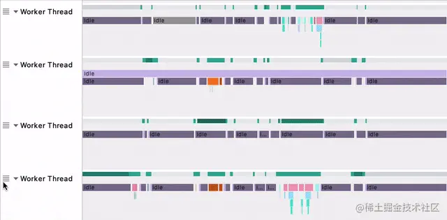 我们从您那里了解到,选择每个线程来查看其调用图表(或系统跟踪的跟踪事件)很麻烦,因此我们将所有线程活动合并到一个视图中,一次性显示线程状态和调用图表。默认情况下,我们按照线程的繁忙程度进行排序,但你可以拖拽任何一个单独的线程来重新排序。