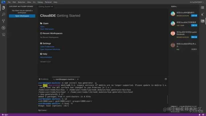 如果使用CloudIDE,网页上点点,新建一个node.js技术栈的实例,基本环境就给你准备好了,直接上手操作,npm直接用,网络没毛病。