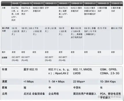 - 由以上组织定义的技术包括四个领域的物理层标准