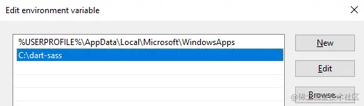 在Windows "路径 "中添加Dart Sass。