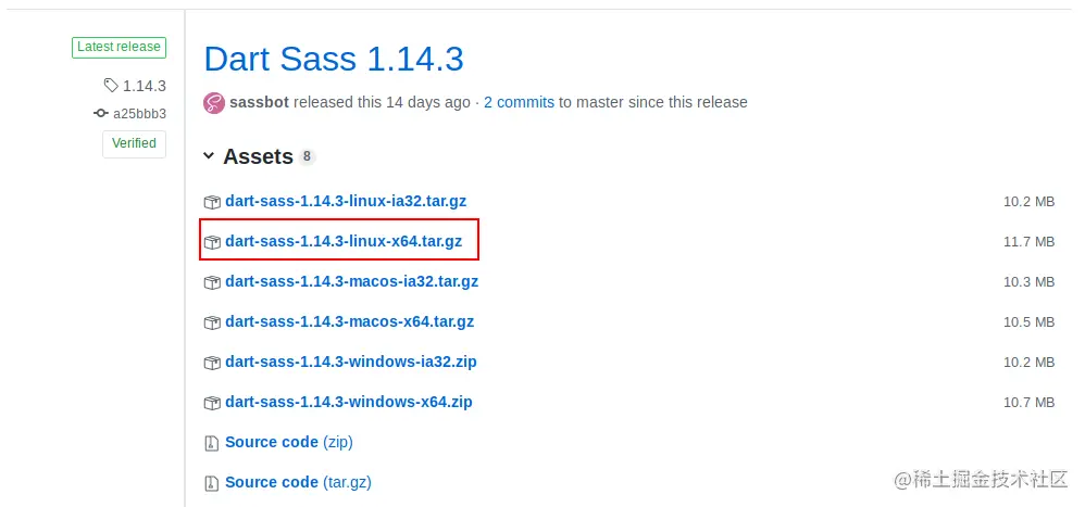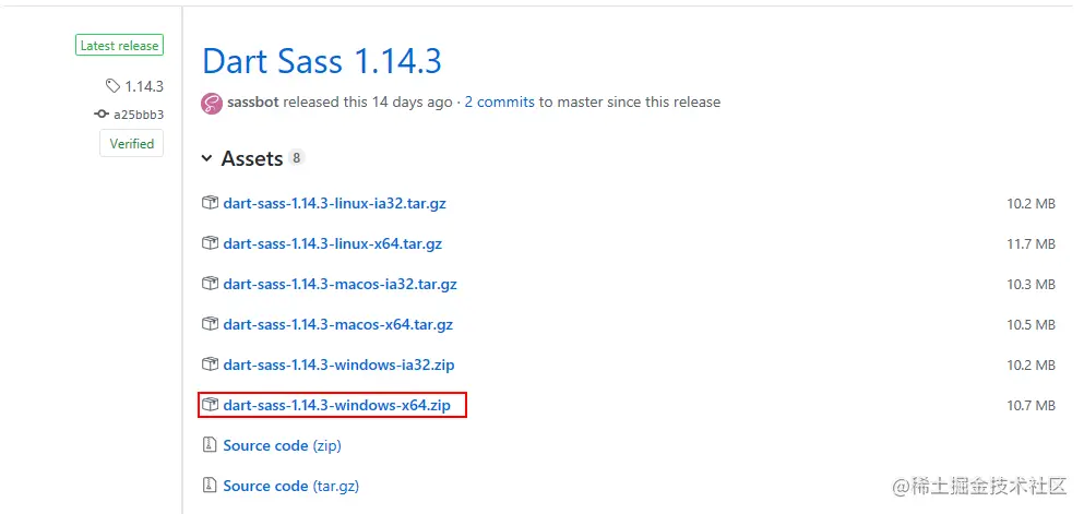 然后我们就可以从几个软件包中选择。由于我们要在Windows上安装Dart Sass,所以选择64位Windows下载。点击链接进行下载。