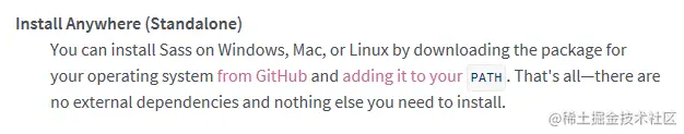 首先前往Install Sass网站,在Install Anywhere(Standalone)下点击来自GitHub的链接。