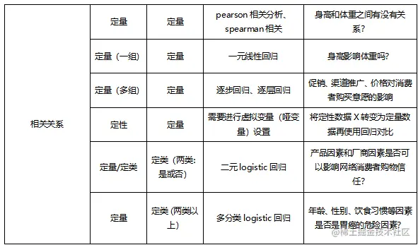 差异关系:通常是研究不同类别的差异性,如男生和女生(定性)的智力(定量)差异。