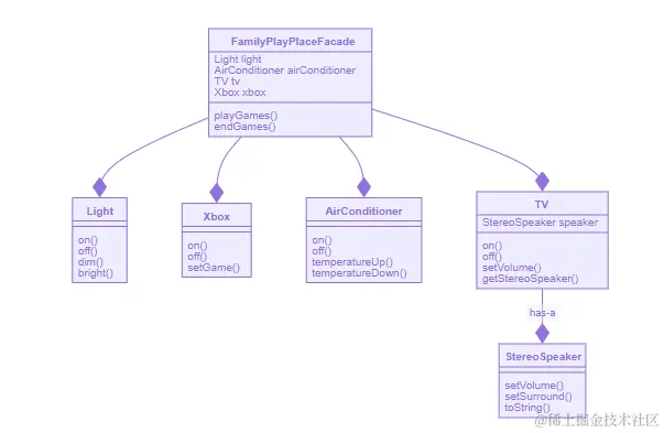 new FamilyPlayPlaceFacade(light, airConditioner, tv, xbox);