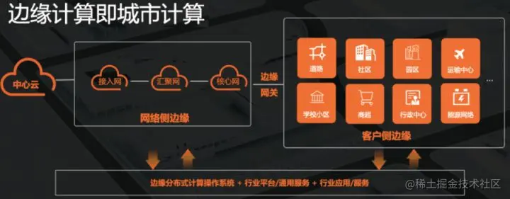 阿里云定义边缘计算即城市计算,为城市提供算力基础。城市计算的场景涉及到道路计算(车路协同、交通监测)、公用事业计算(智能电网、智能环保)、消费计算(新零售、物流云)、安全计算(公共安全)和家庭计算(云游戏、VR/AR)等等。