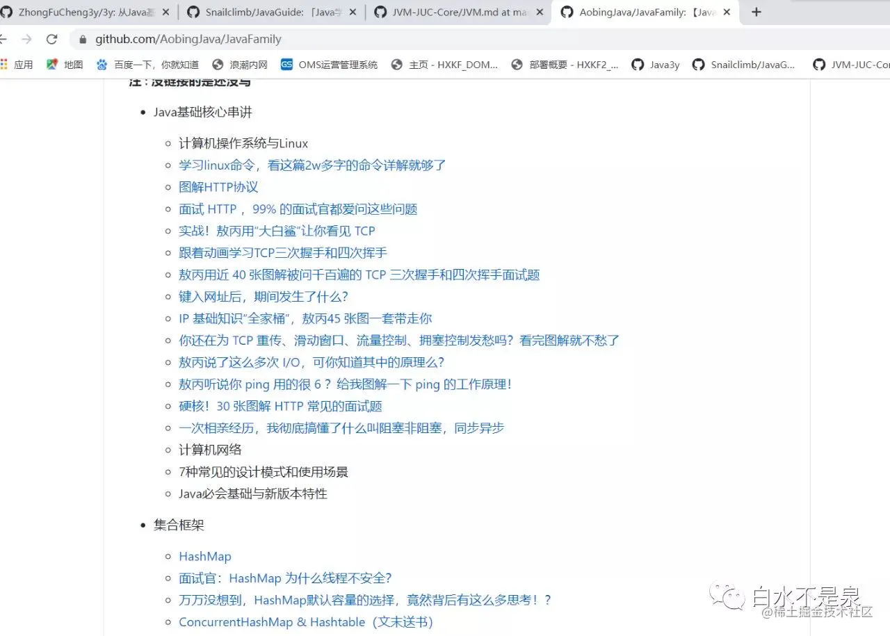 给大家推荐三个我平时看的最多的Github,这三位的文章我也不知道自己看了多少遍了,没事就在看,吃饭的时候看,上厕所的时候看,坐车坐地铁的时候看,和翔子哥(华为大佬)五一出去吃烤肉的时候我还在看。