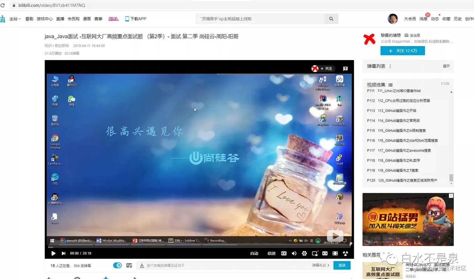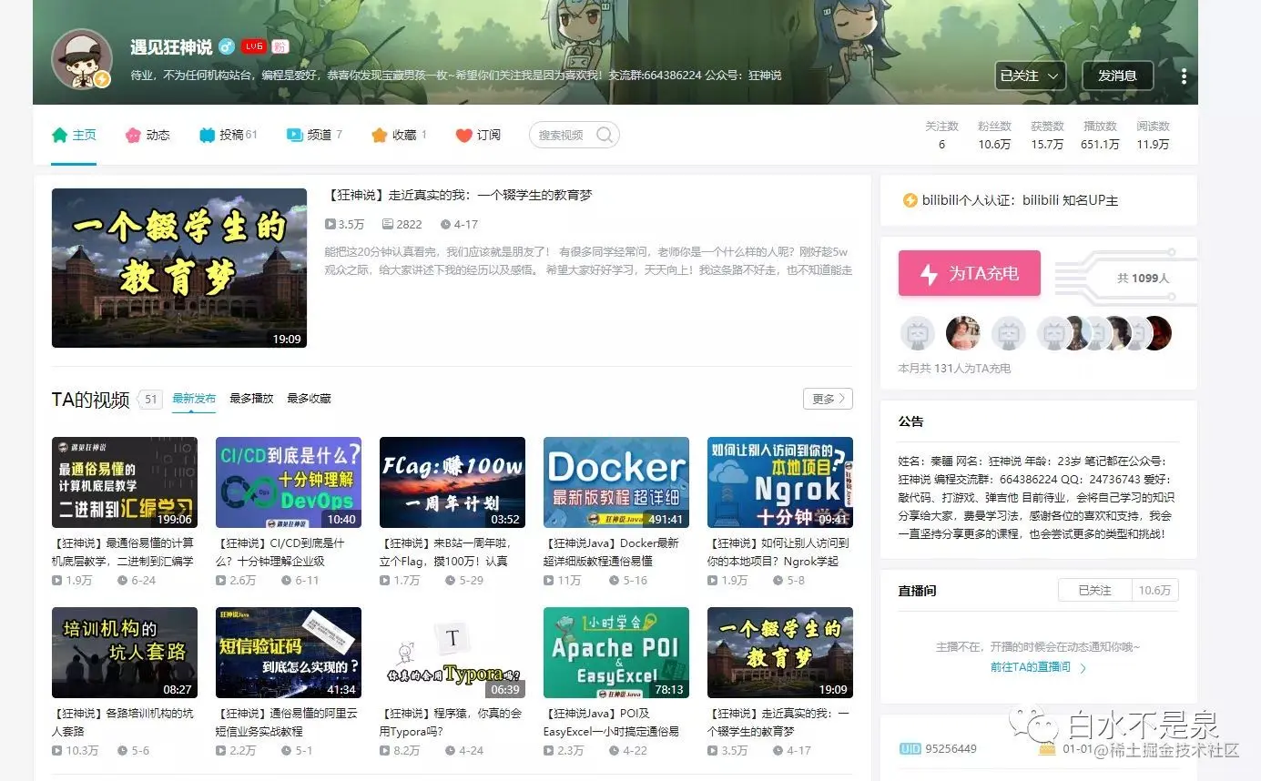 因为疫情原因,过年之后就一直在家办公,没有紧急开发任务的时候,就会去B站找学习视频,期间也走了很多弯路,因为一直找不到一个满意的Java系列教程。最后是找到了一个感觉讲的还不错的UP主,推荐给想学习Java相关知识的小伙伴们。