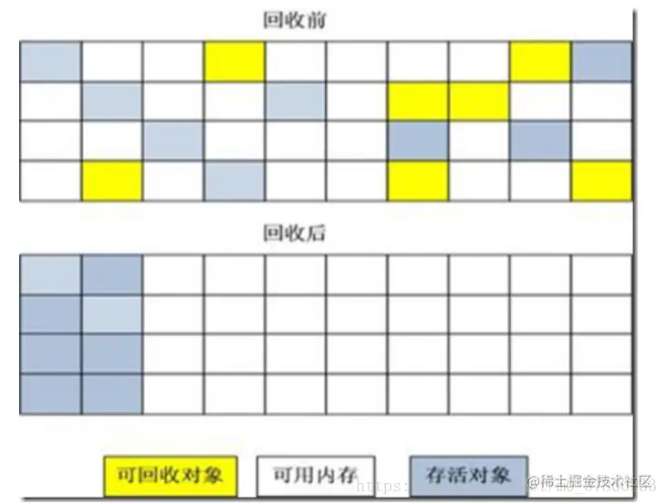 ②清除阶段,将上一轮存活对象压缩到内存的一端,之后清理边界。(如此一来可以减少内存碎片,避免分配大对象时空间不够)