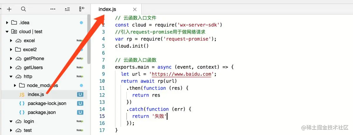 三,编写我们的云函数代码