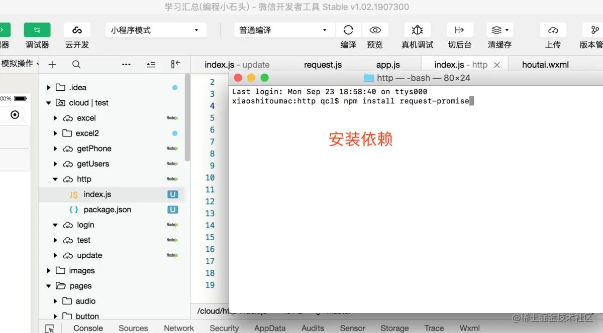 2,在打开的终端中输入 npm install request-promise