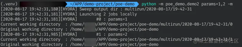 注意到上个例子中,我们打印了两个working directory,这是hydra的一个需要知道的默认行为:每次运行hydra都会默认自动地创建一个名为'output/[date]/[time]'的输出目录(Current working directory),默认地,这里将会成为程序的工作目录;如果需要还原当前真实的工作目录可以通过hydra的utils模块提供的功能utils.get_original_cwd()获取真实目录。