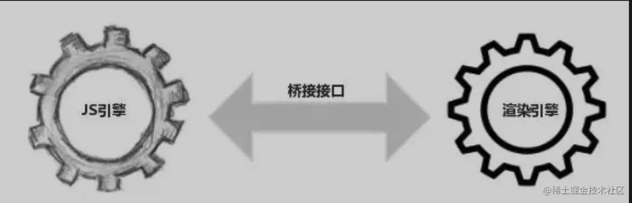 因为 DOM 是属于渲染引擎中的东西,而 JS 又是 JS 引擎中的东西。当我们用 JS 去操作 DOM 时,本质上是 JS 引擎和渲染引擎之间进行了“跨界交流”。这个“跨界交流”的实现并不简单,它依赖了桥接接口作为“桥梁”(如下图)。