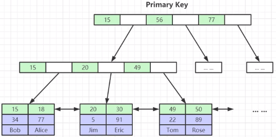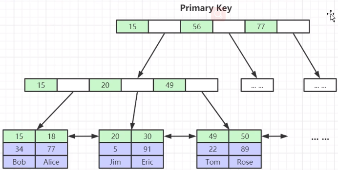 2)叶子节点包含所有索引字段,即表的所有索引元素,也成为磁盘页;