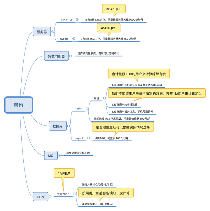 其他的像CDN、MySQL是否需要主从之类的就不再赘述了,视实际情况而定。从理论上,如果使用PHP-FPM的方式,大概需要19000元/月来解决项目的这个问题,而当使用swoole时,大概需要4500元/月,在这里并没有鼓吹swoole,想说明的是当我们在面对大并发项目时,尤其是业务逻辑相对复杂,我们使用常驻内存更能解决问题,而这与语言无关。 最后,需要说明的是,上述仅是理论阶段,至于实际数据如何都需要进一步检验。文章素材来源于网络,如果有写的不正确的地方,望指出。
