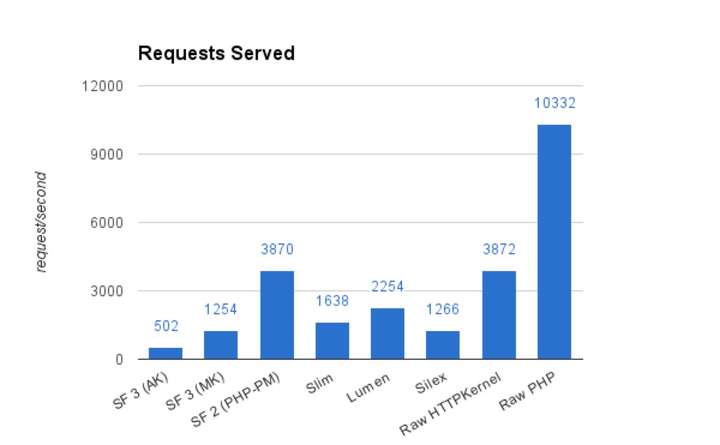 这是一张来自symfony的压测数据,使用的是1 CPU, 4 GB and PHP 7的配置。