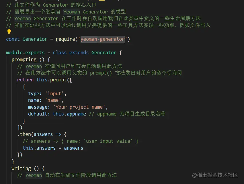 - Yeoman 开放脚手架平台,不封装任何具体方案 github.com/yeoman/yeom…